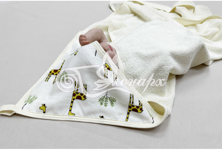 Махра и муслин - идеальное сочетание материалов. Обе ткани тактильно приятные, прекрасно впитывают воду.